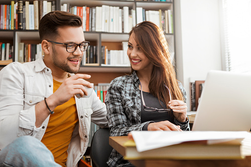 Young student is distracted by beautiful woman student